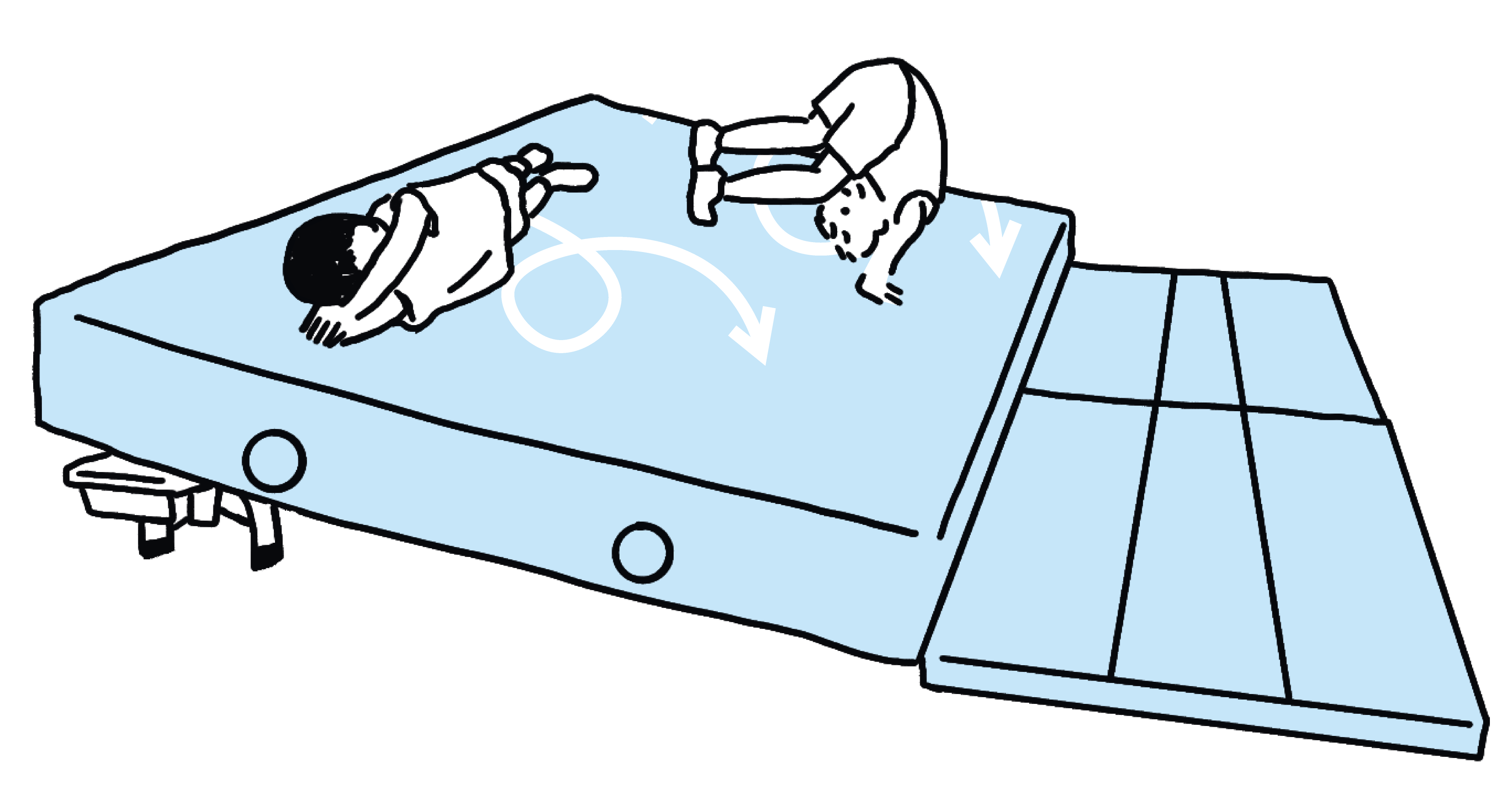 Leg een zacht deken neer op een schuin vlak. Of maak een rolbaan op het gras tussen een aantal bidons.