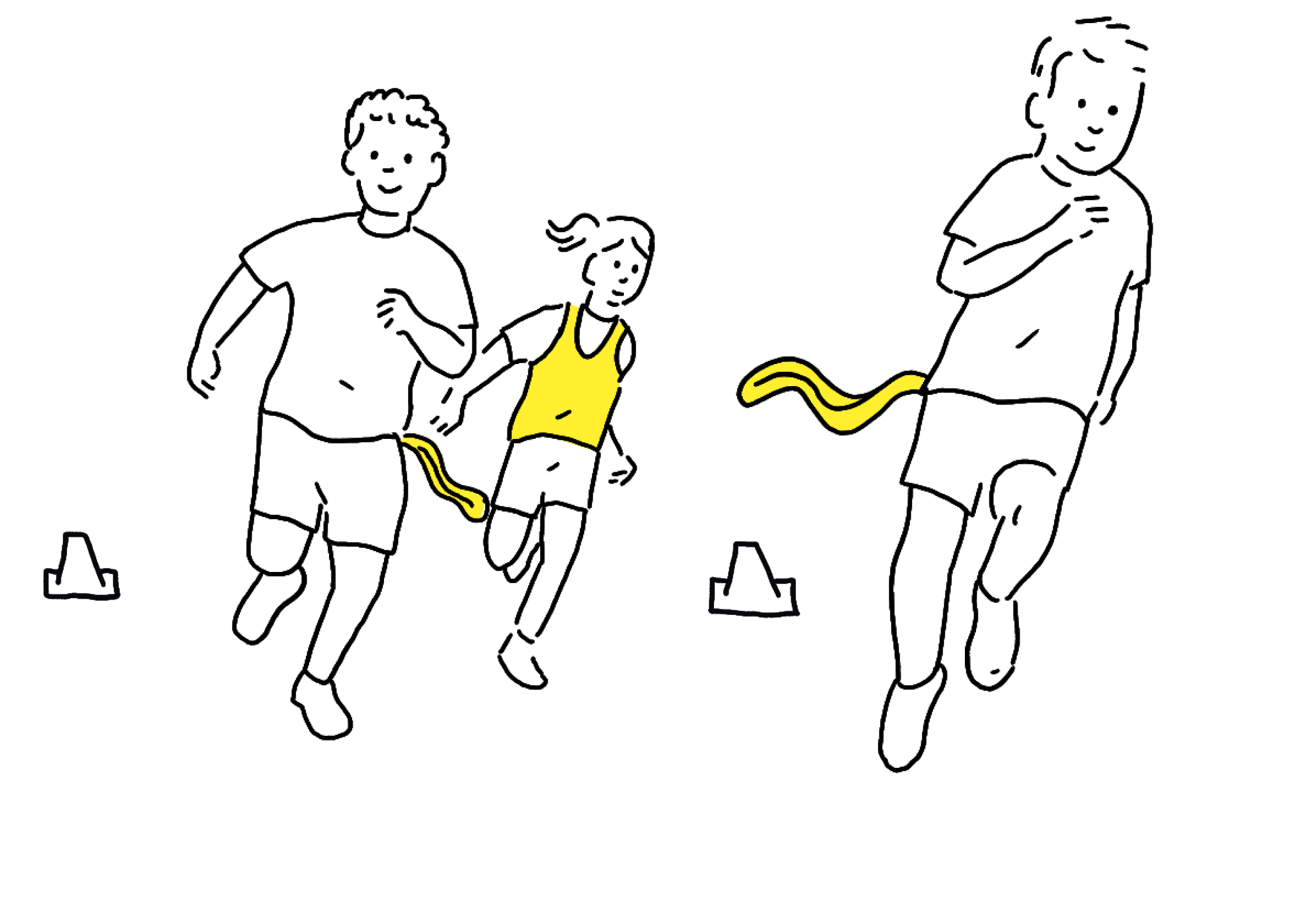 Pak als kat de staart van de muizen. Ren als muis weg voor de kat en voorkom dat je staart wordt gepakt.
