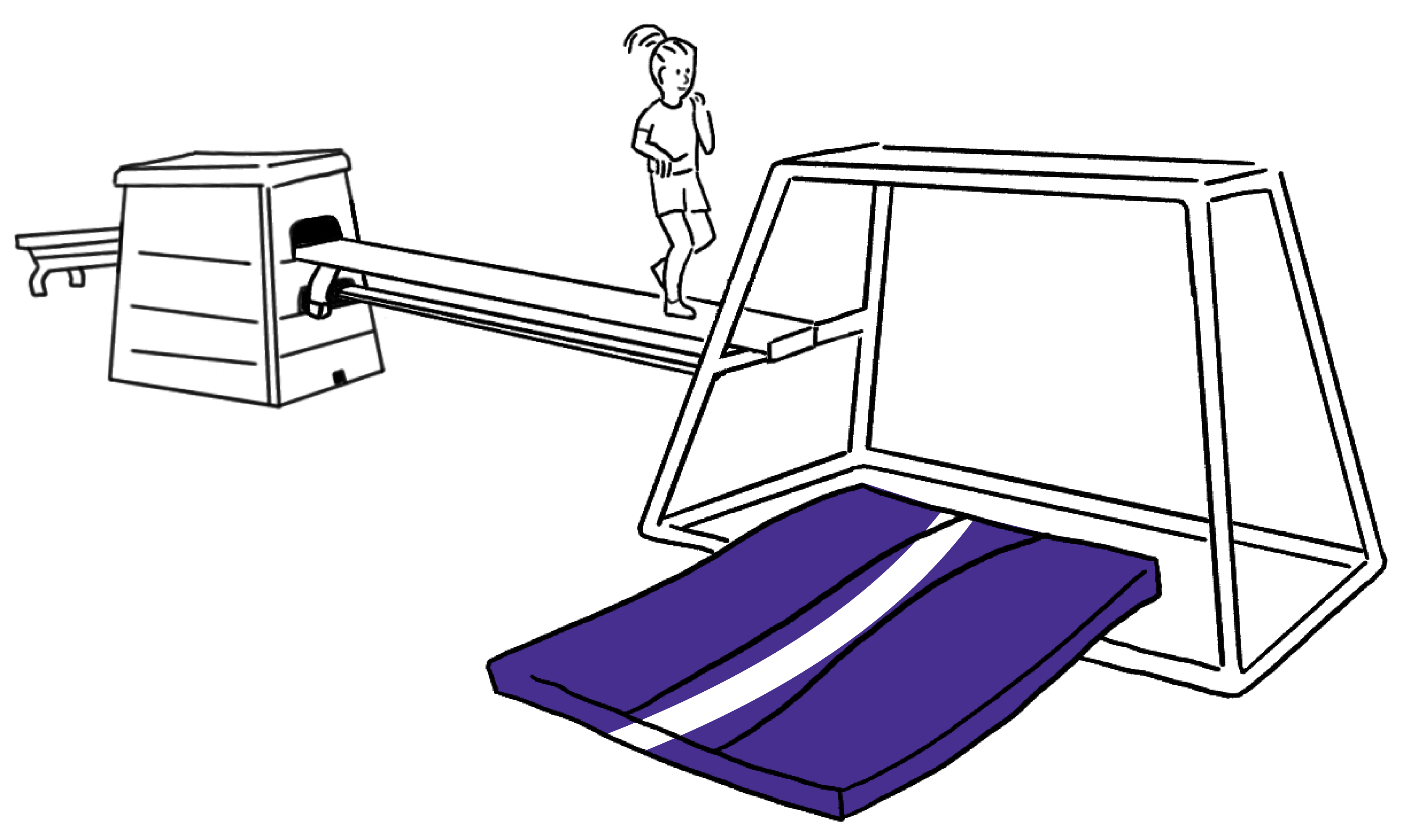 • Pas starten als vorige kind over de bank loopt